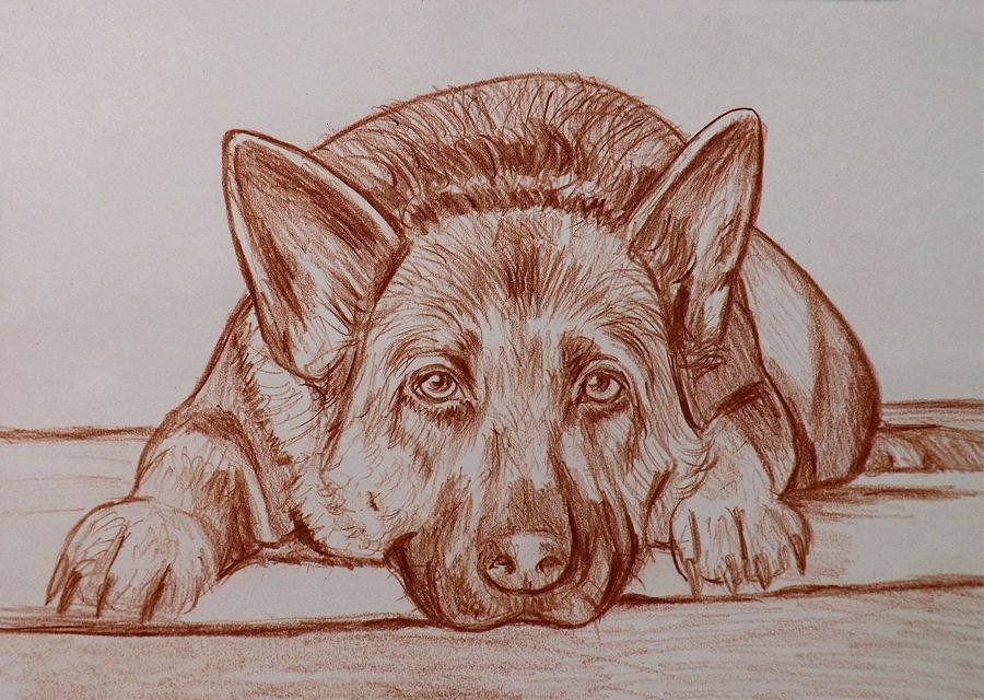 ![Овчарка лежит рисунок]()