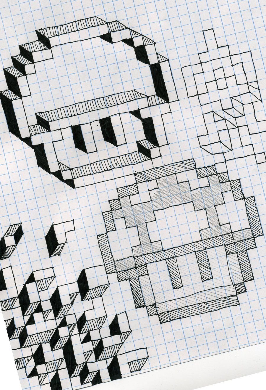 ![Объемные фигуры на бумаге в клетку]()