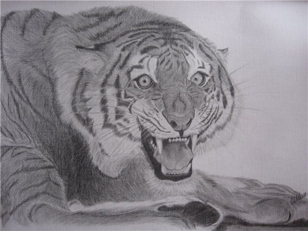 ![Рисунок тигра карандашом]()