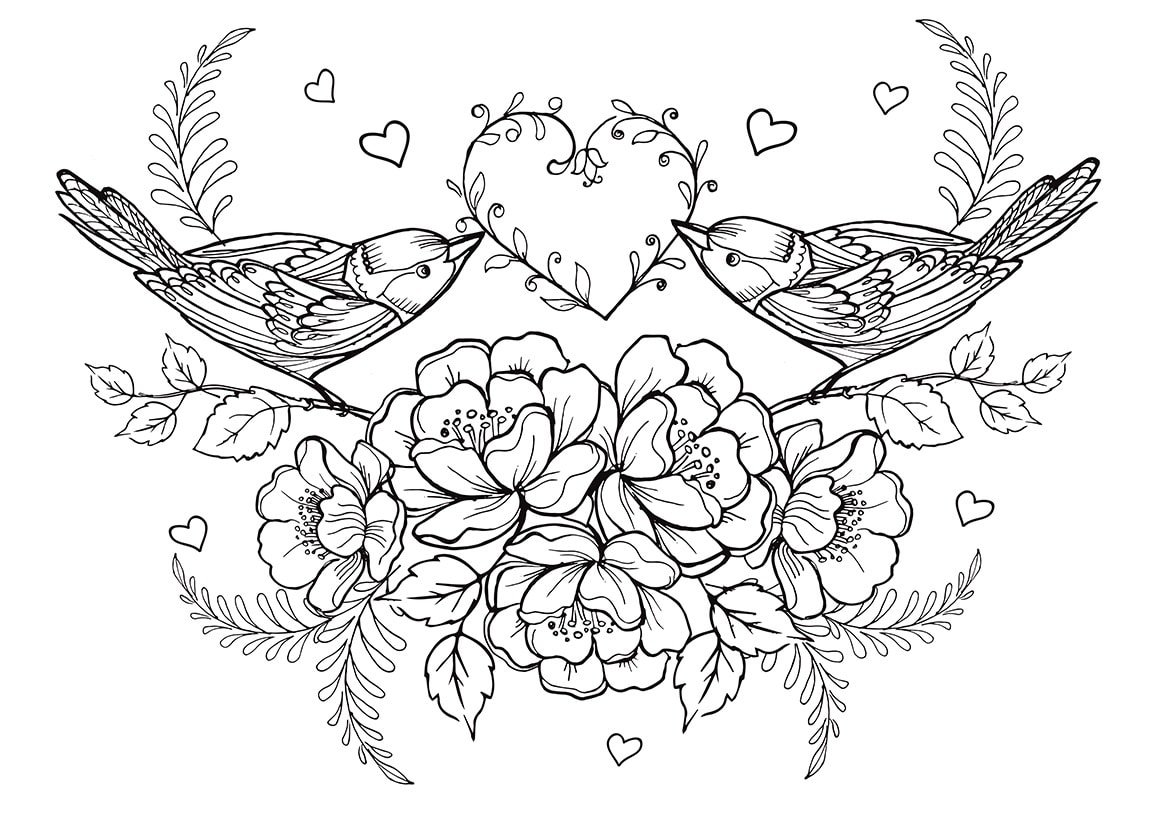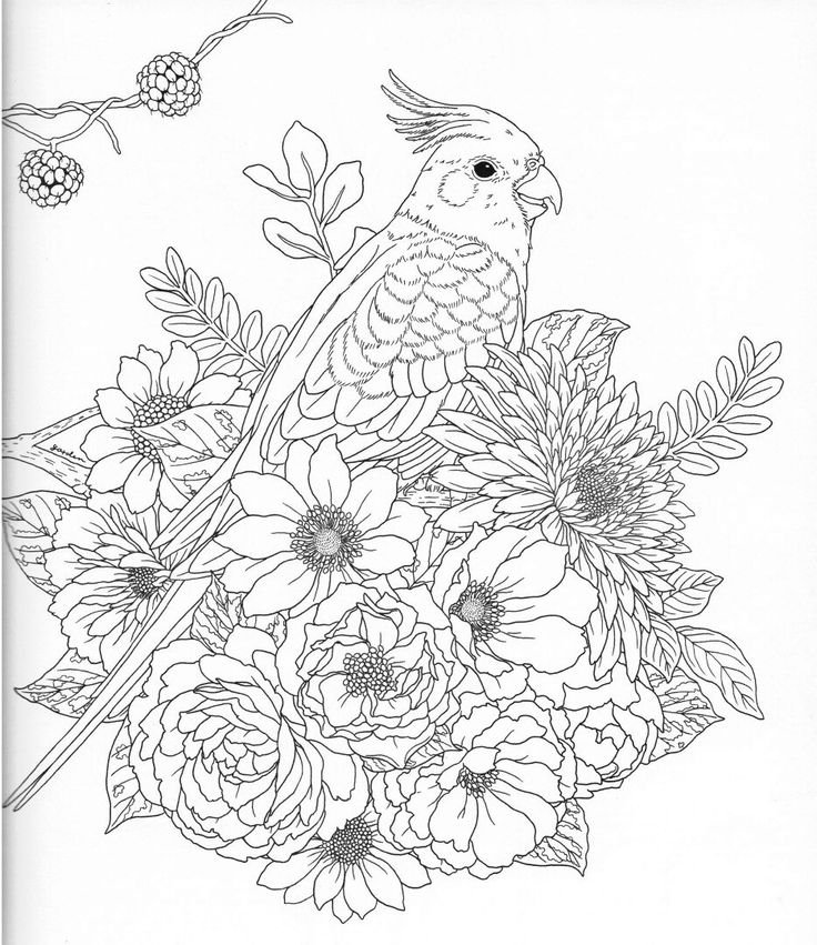 Раскраски цветы и птицы