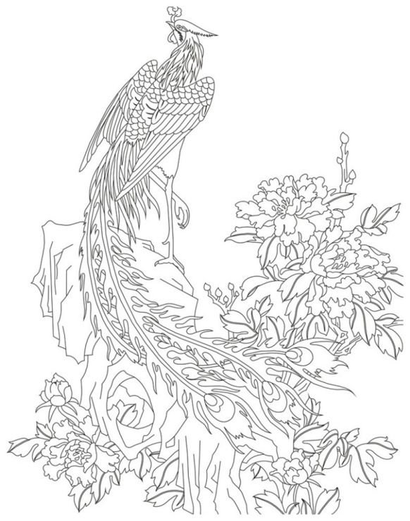 ![Павлин. Раскраска]()