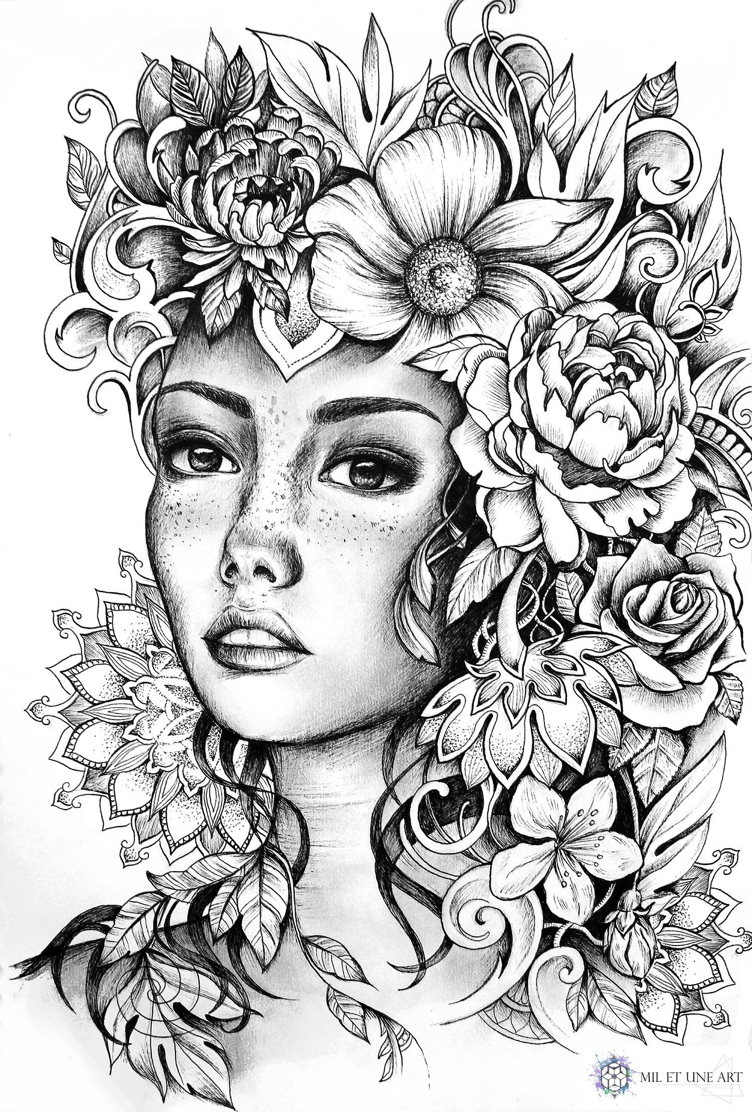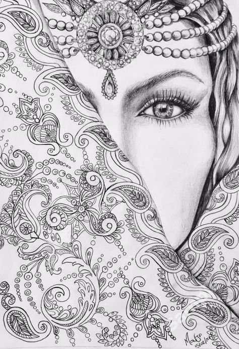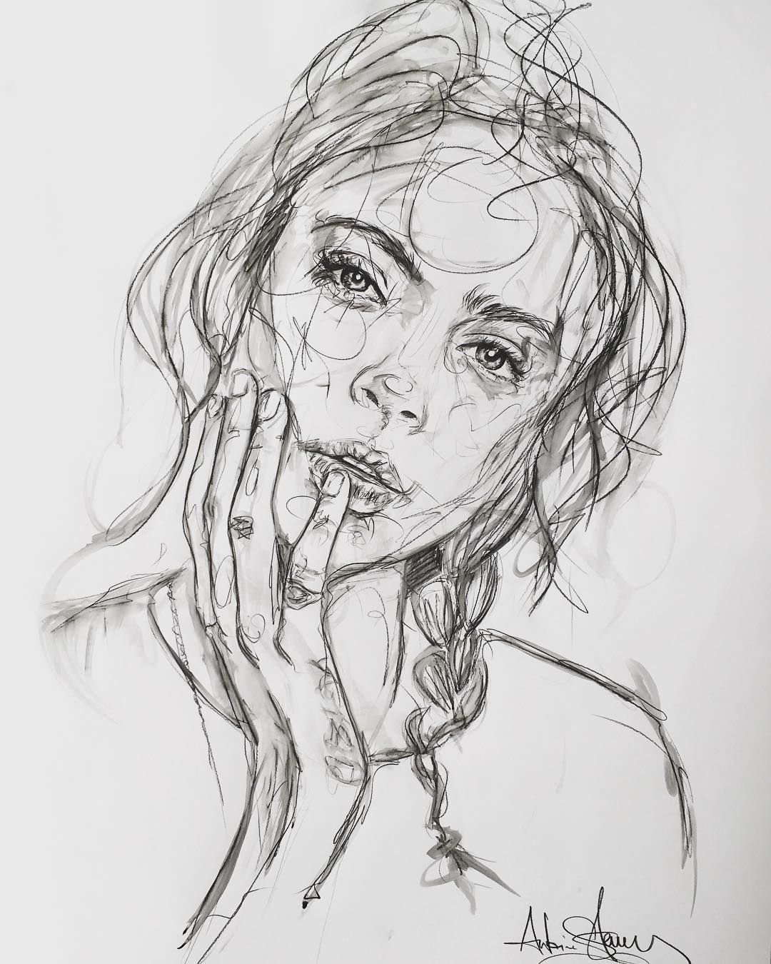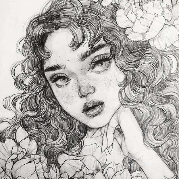 ![Скетч лица девушки]()