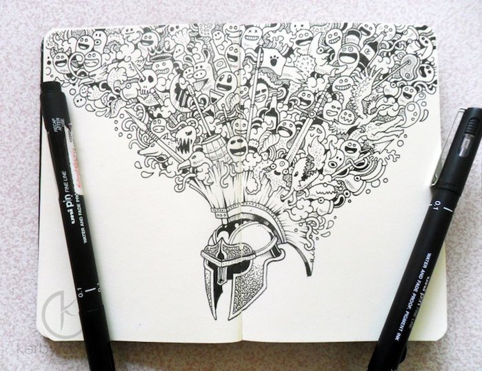 ![Скетчбук гелевой ручкой]()