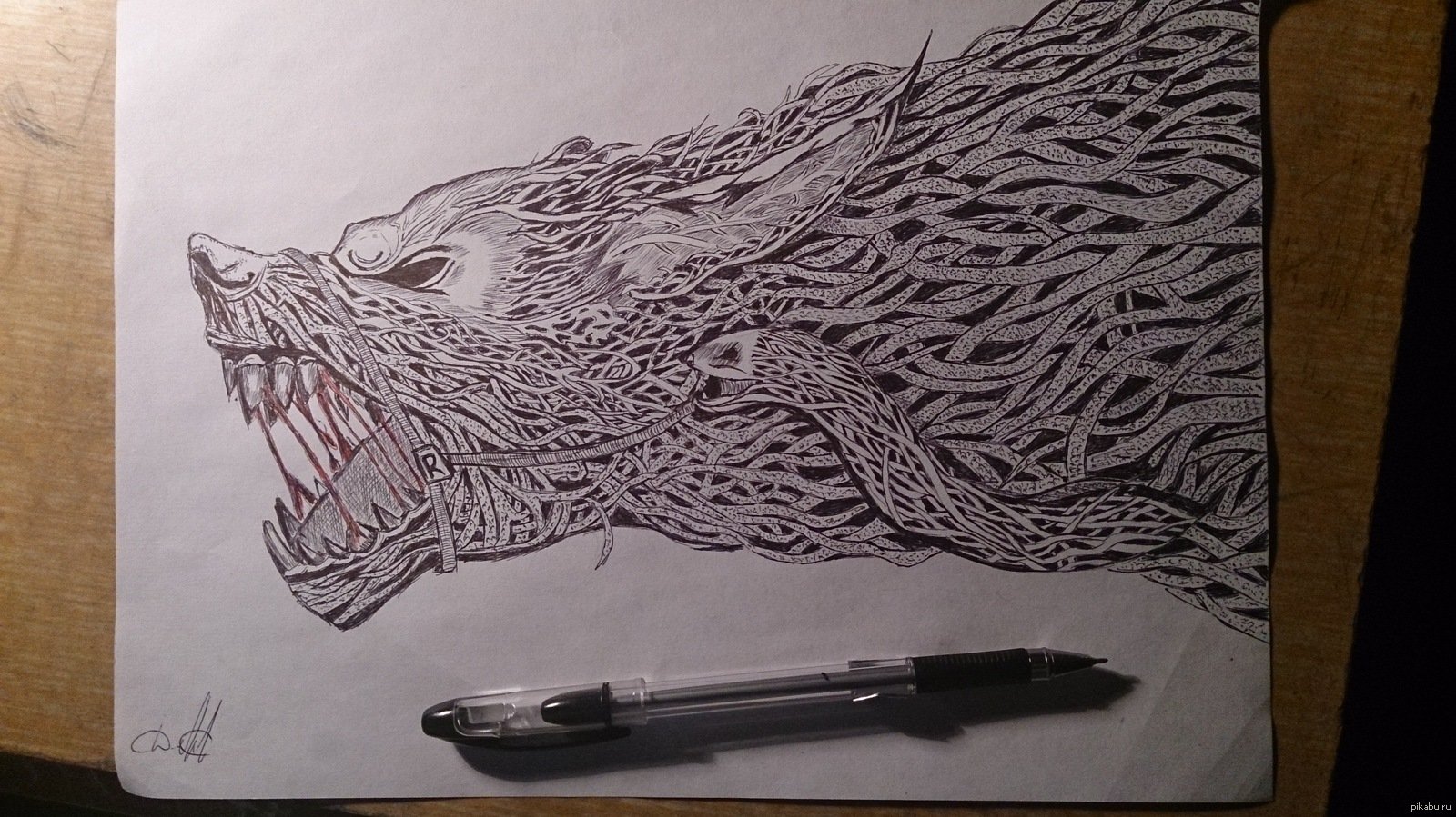 ![Волк гелевой ручкой]()