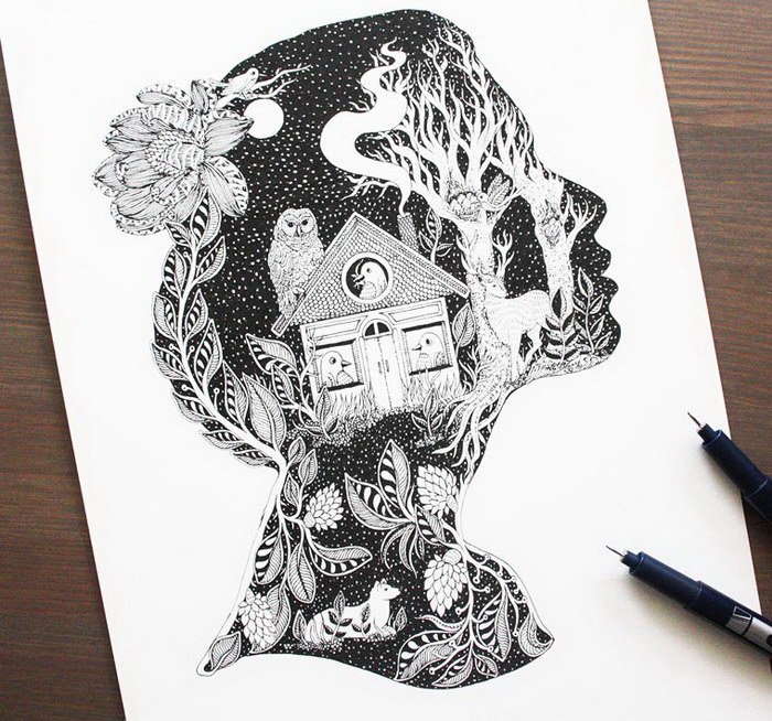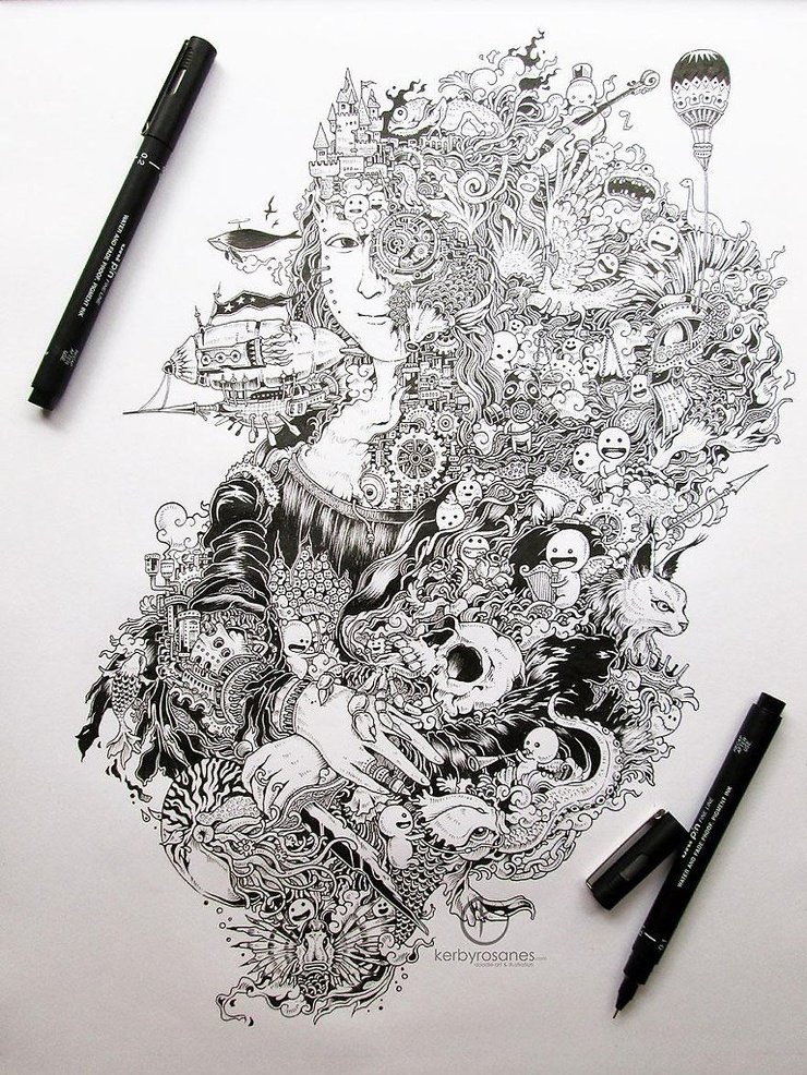 Картины черной ручкой