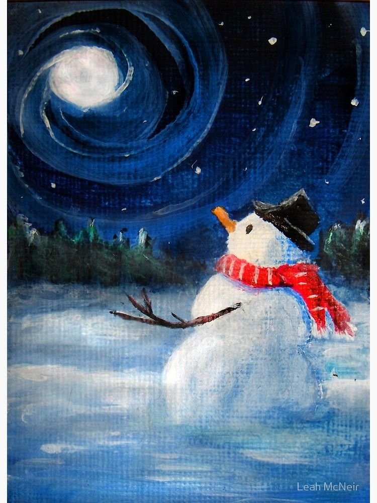 ![Снеговик акрил живопись]()