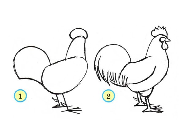![Нарисовать петуха карандашом поэтапно для начинающих детей]()