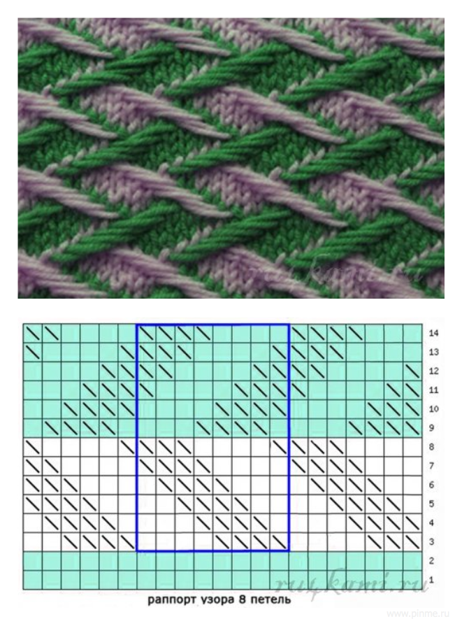![Узор ленивый жаккард спицами]()