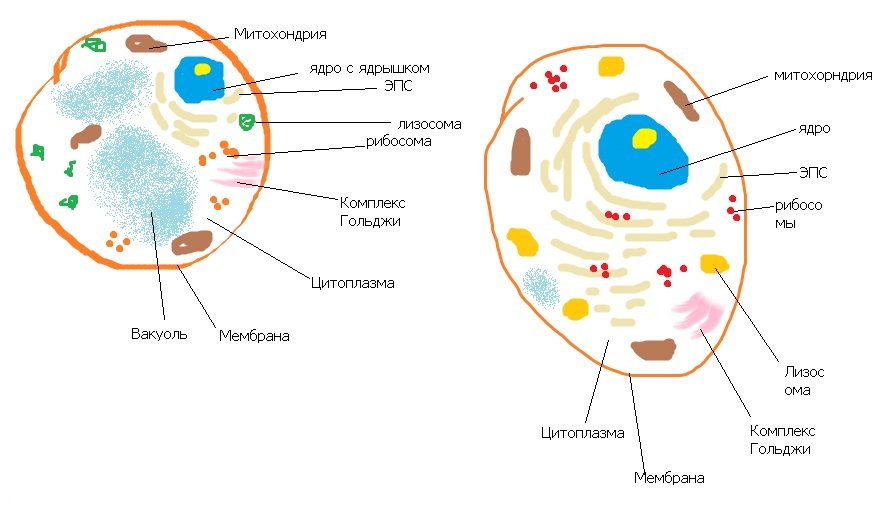 ![Строение растительной и животной клетки рисунок 5 класс биология]()