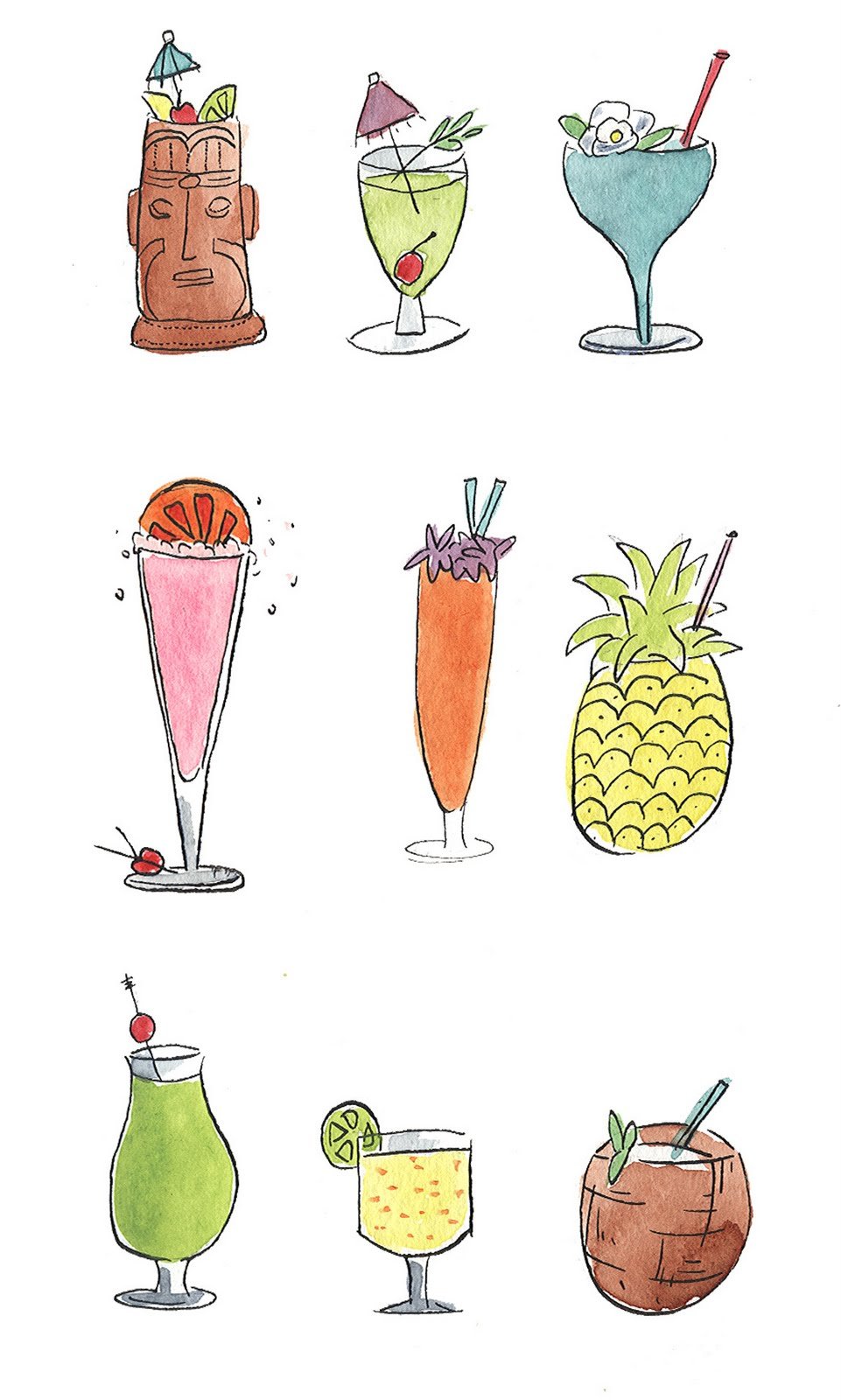 Маленькие рисунки коктейлей