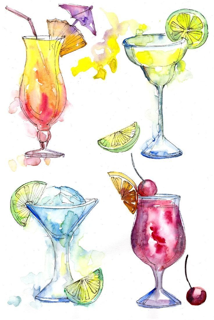 ![Коктейль скетч акварель]()