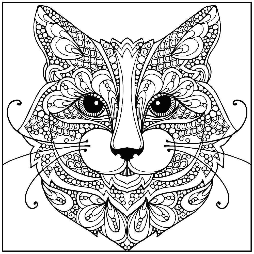 ![Морда кошки раскраска антистресс]()