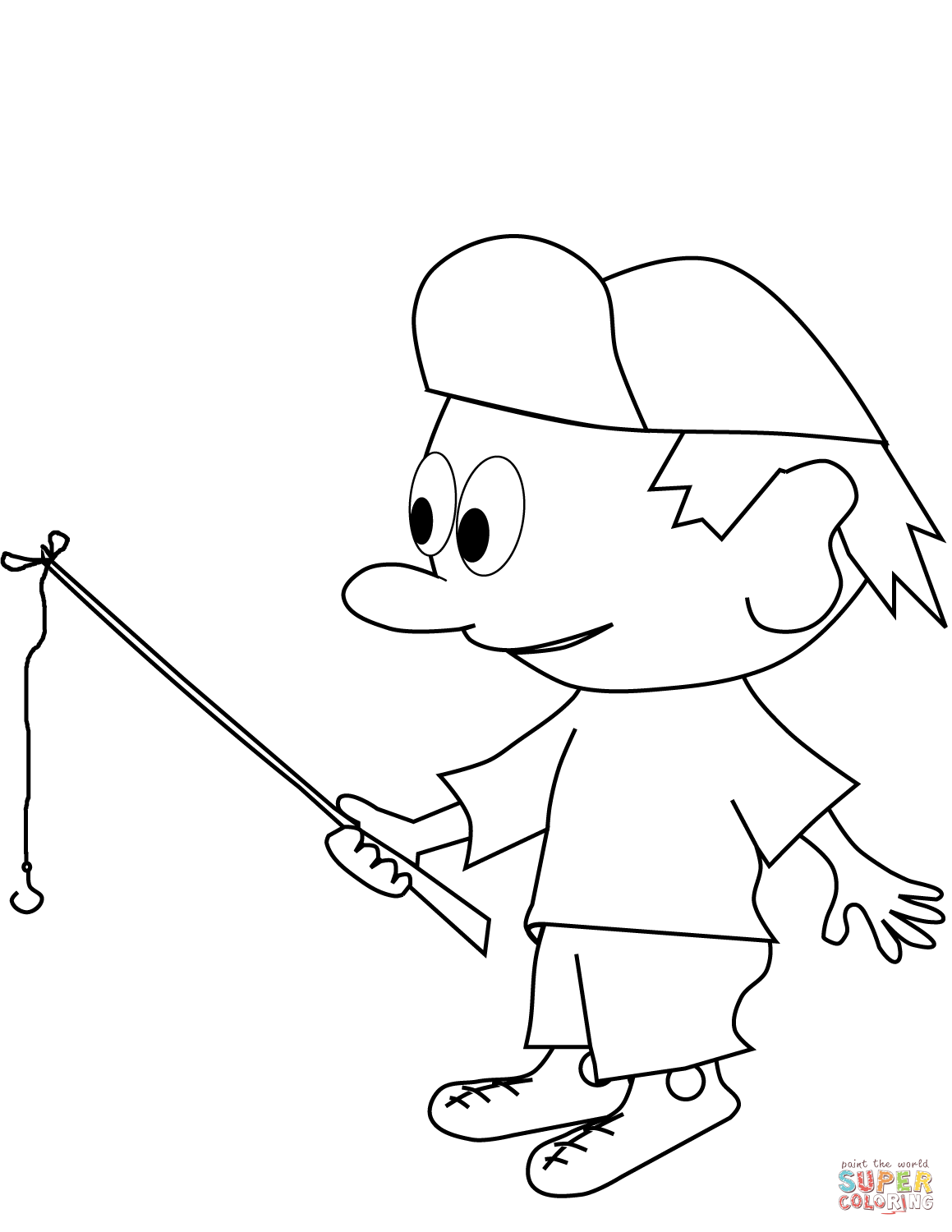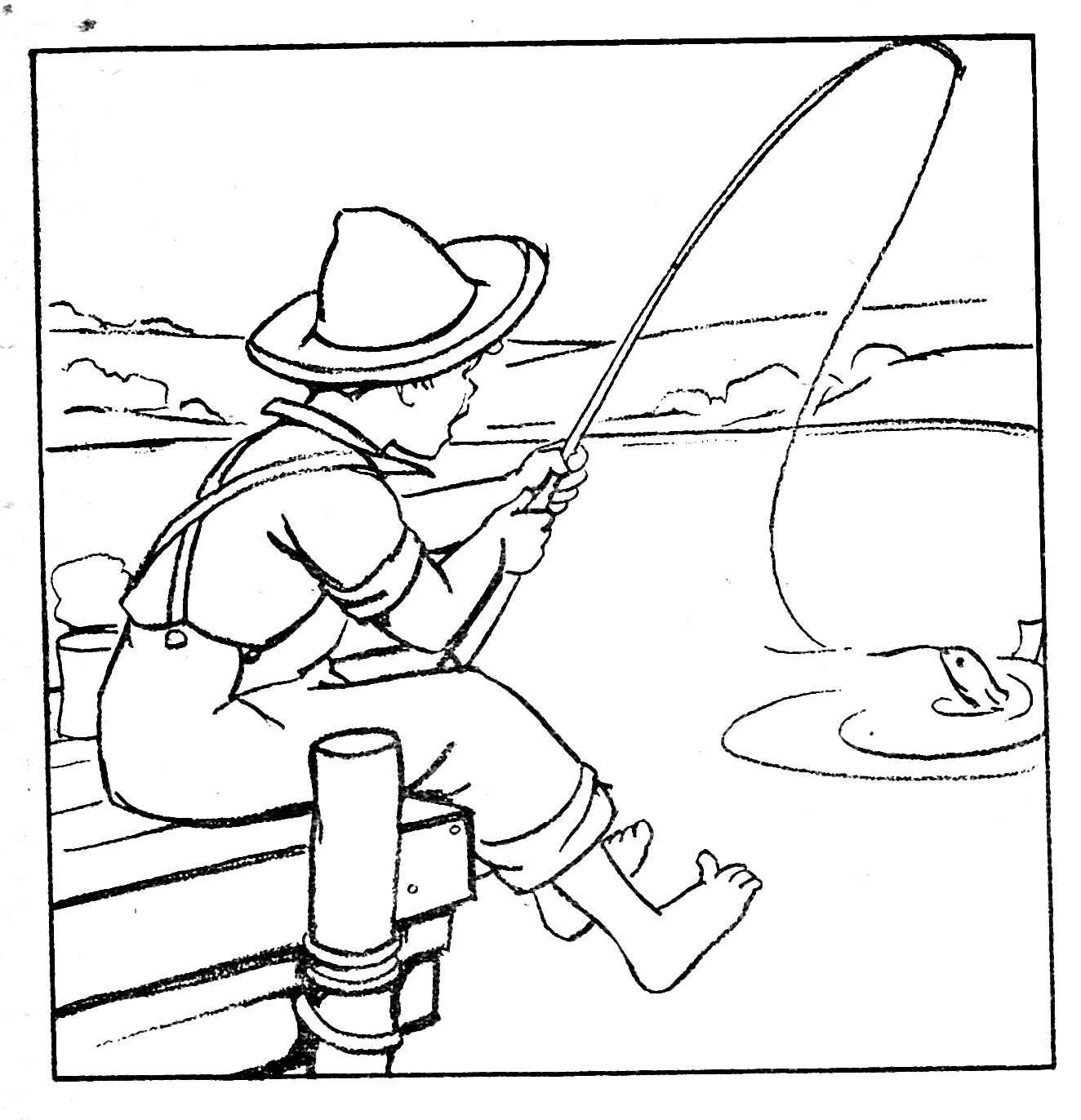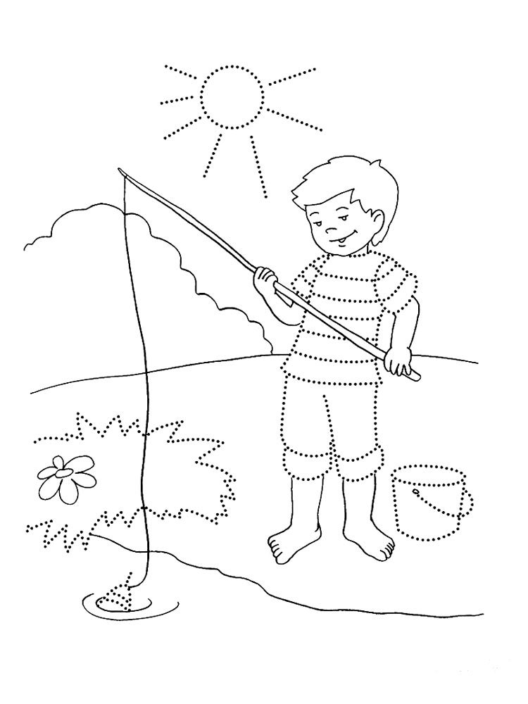 ![Раскраска рыбака с удочкой]()