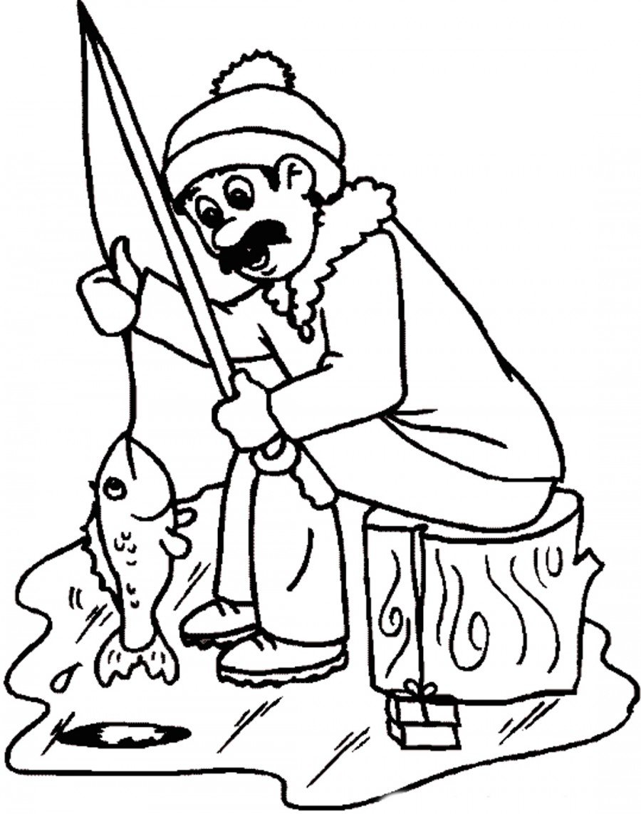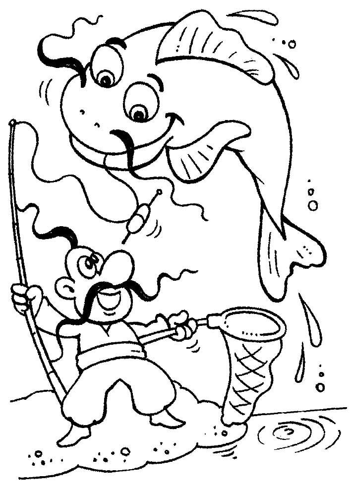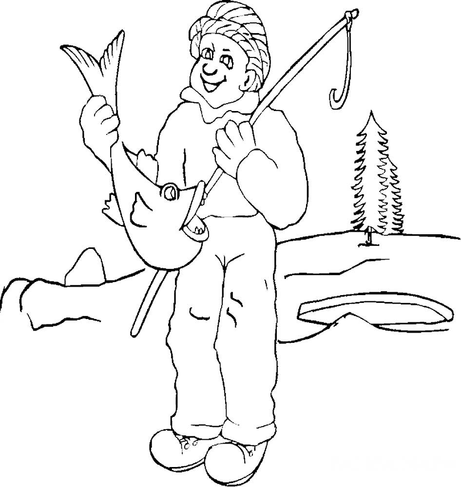 Рыбак раскраска для детей