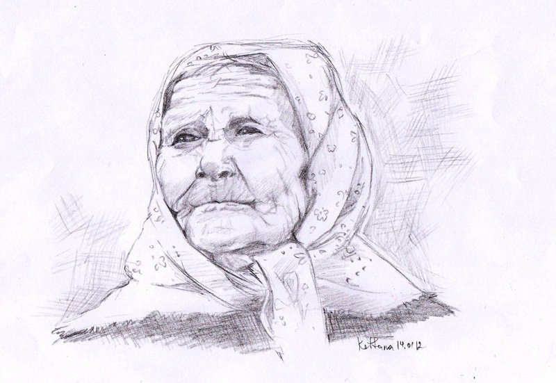 ![Бабка рисунок карандашом]()
