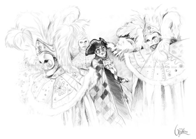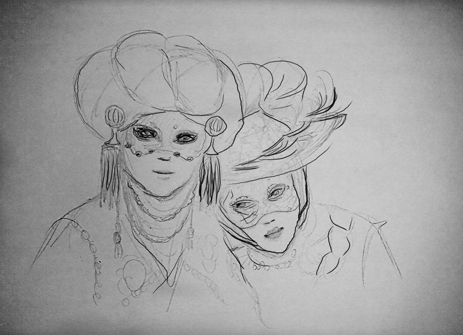 Венецианские карнавальные костюмы карандашом