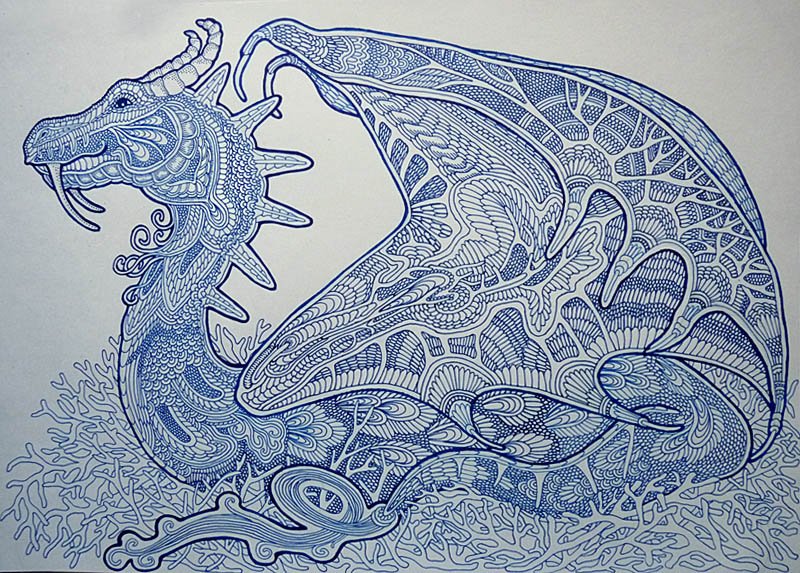 Дракон гелевой ручкой
