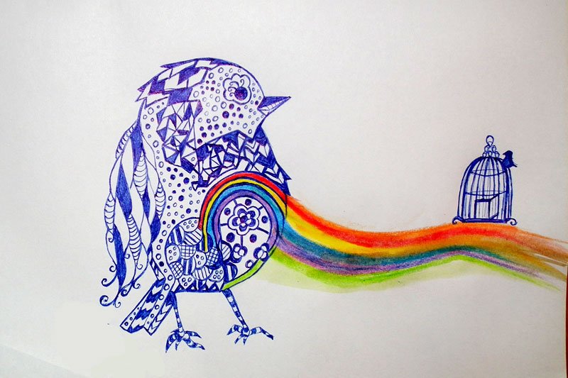 Радуга рисунок черной ручкой с фломастерами