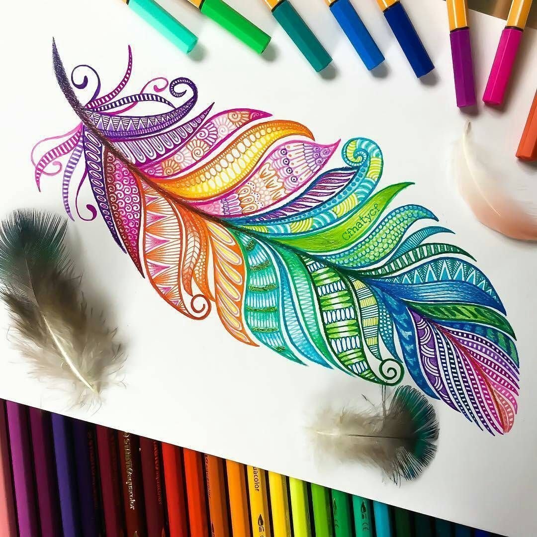 ![Перья Зентангл акварель]()
