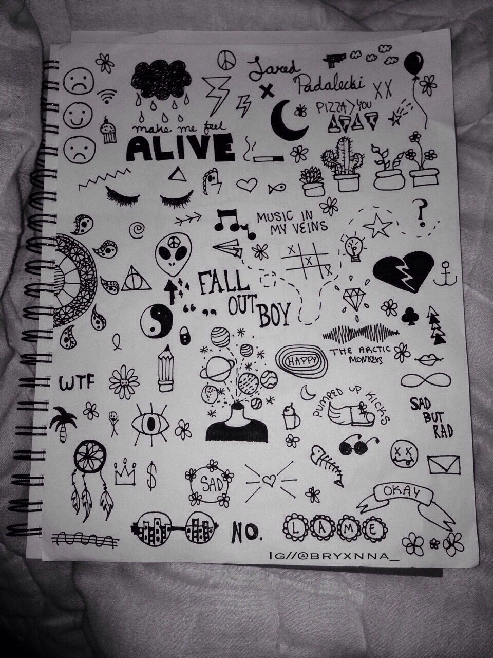 ![Маленькие рисунки в личный дневник чёрной ручкой]()