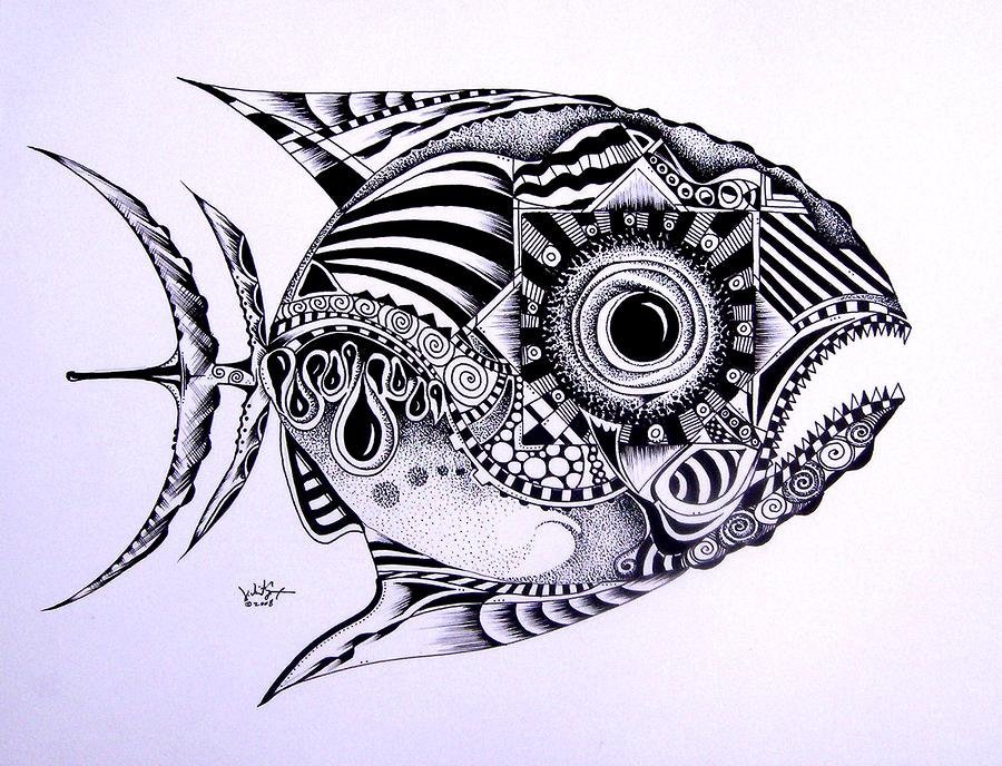 ![Зентангл рыба]()