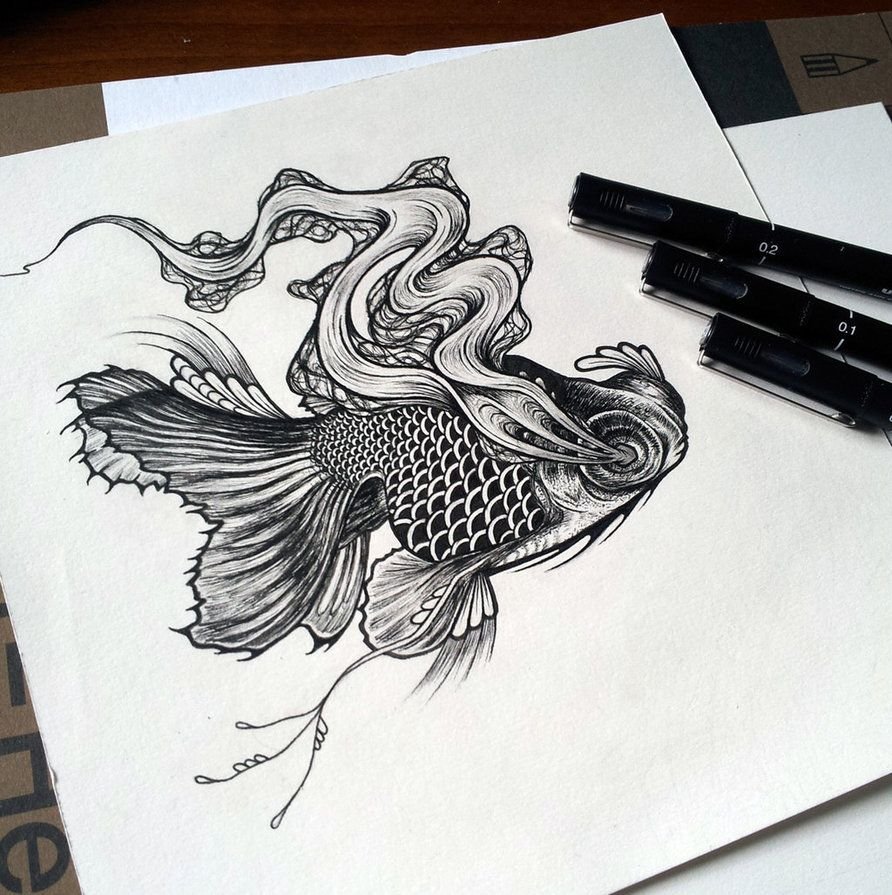 ![Рыба тушью]()
