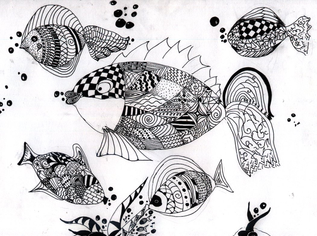 Зентангл и дудлинг рыбы