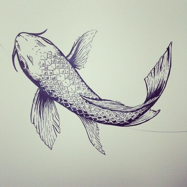 ![Рыба черной ручкой]()