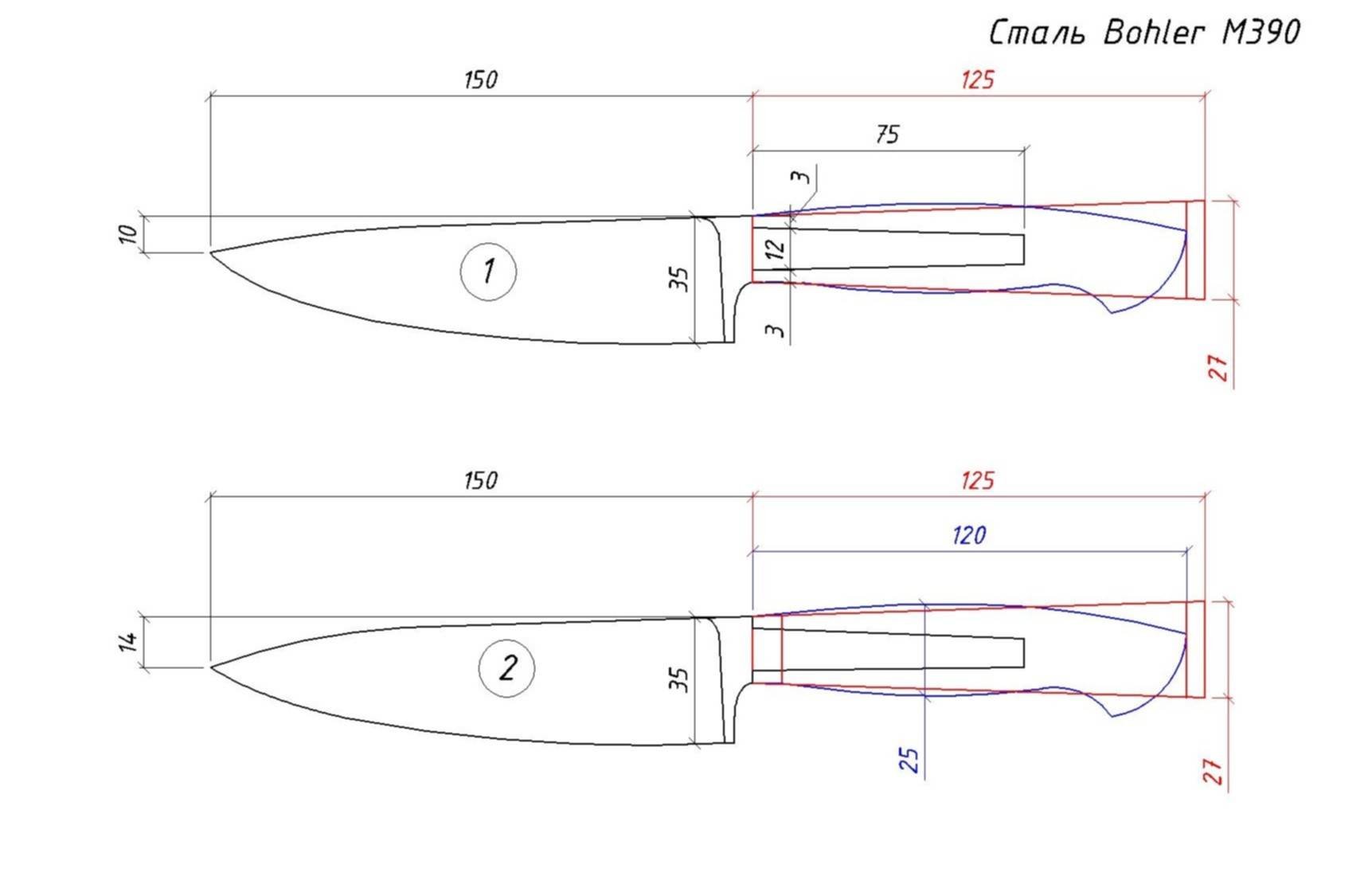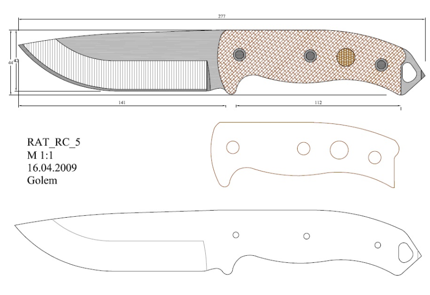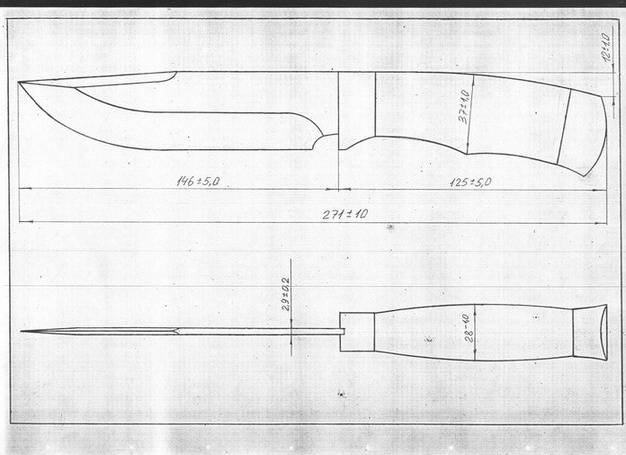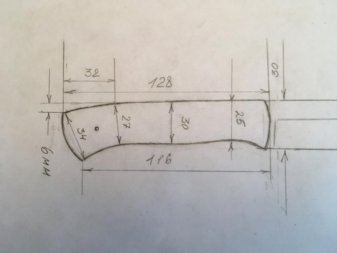 ![Чертёж рукоятки охотничьего ножа с размерами]()