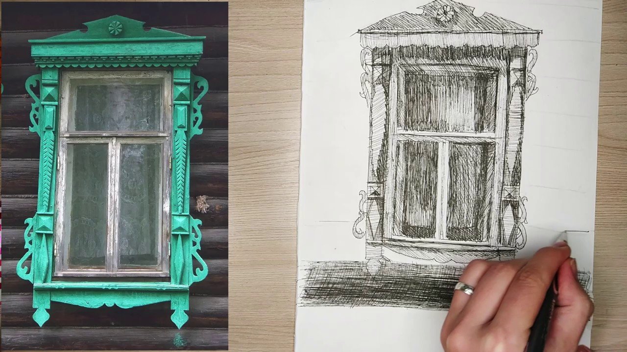 рисунок окна ручкой для срисовки