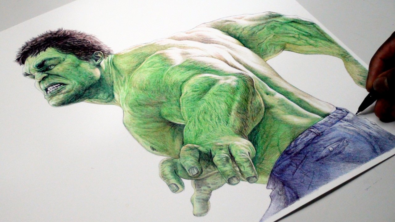 ![Халк цветным карандашом]()