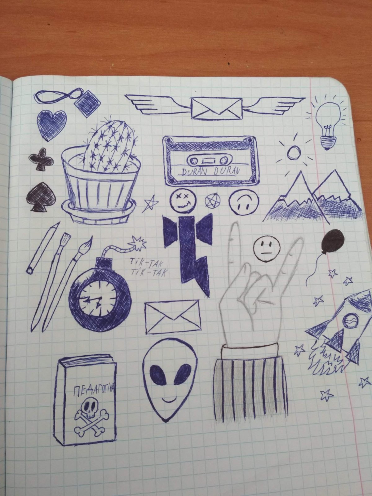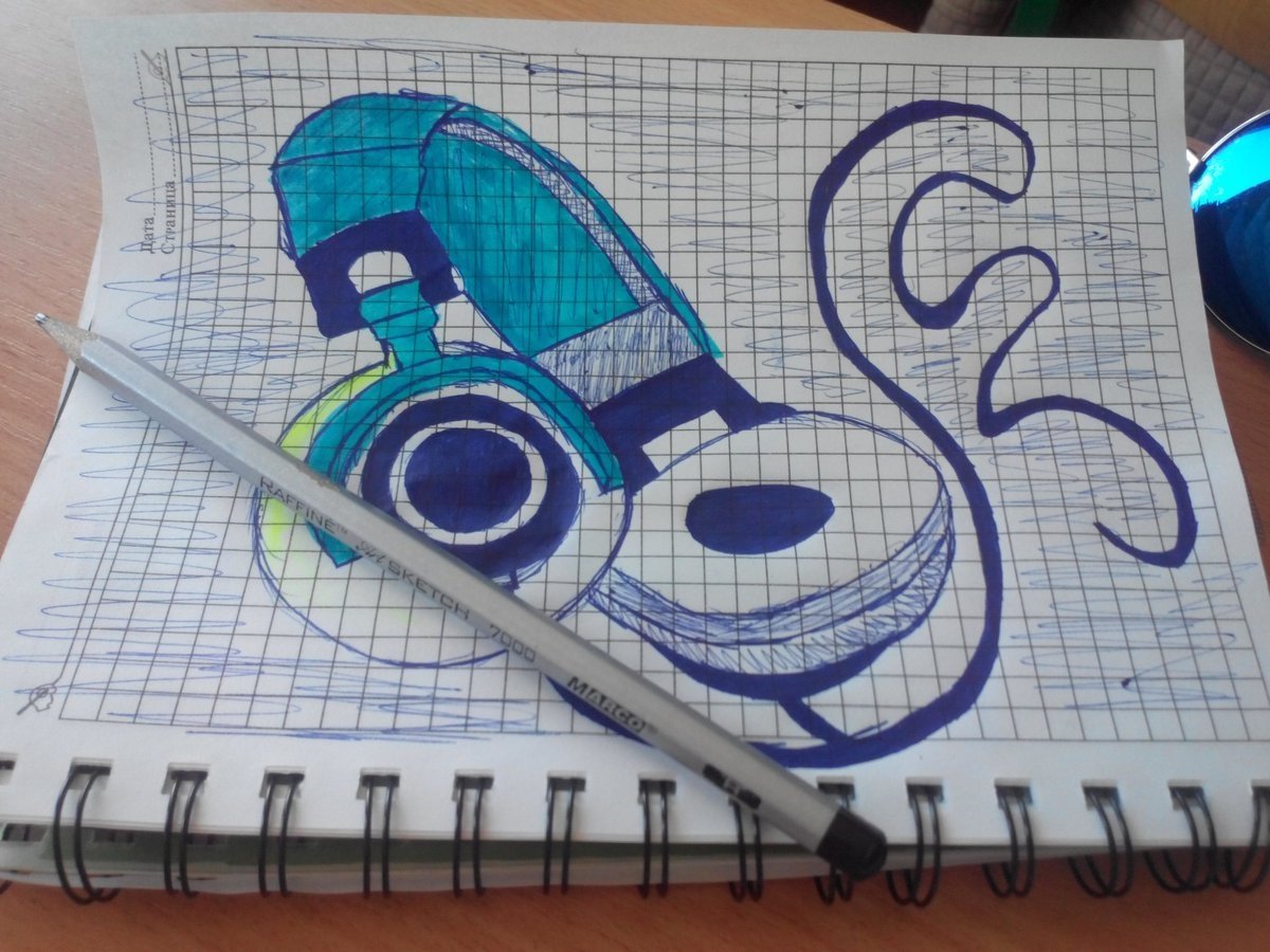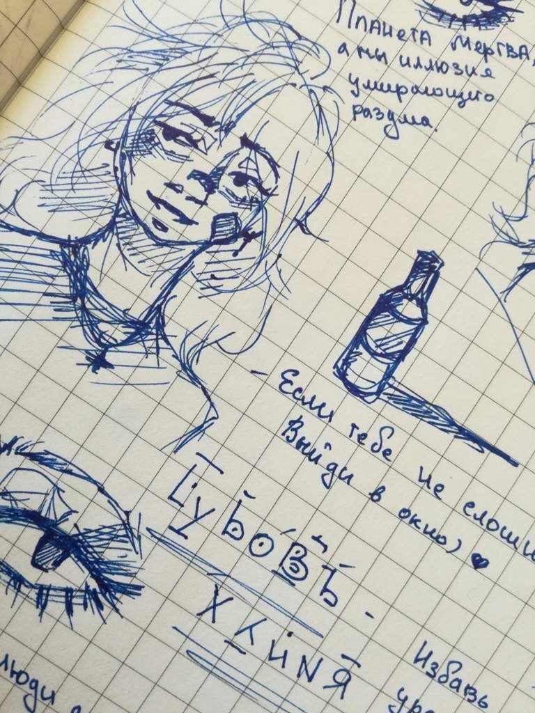 ![Зарисовки ручкой в тетради]()