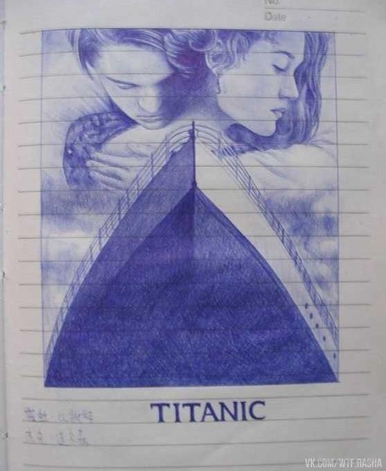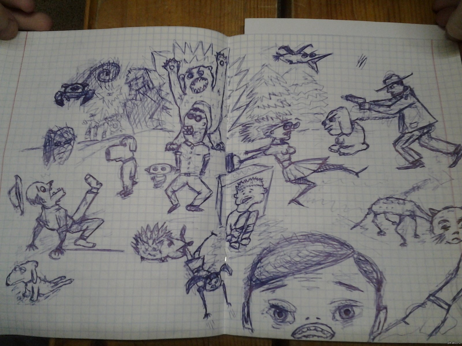![Рисунки ручкой в тетради]()