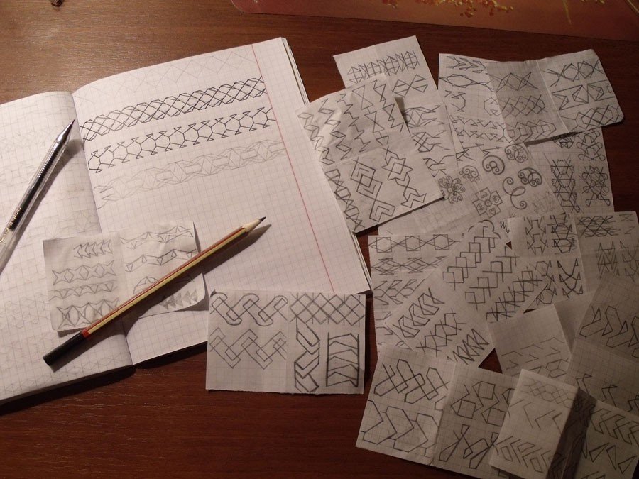 ![Узоры косички в тетради]()