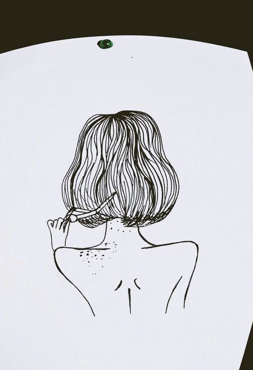 ![Рисунки чёрной ручкой девушки]()