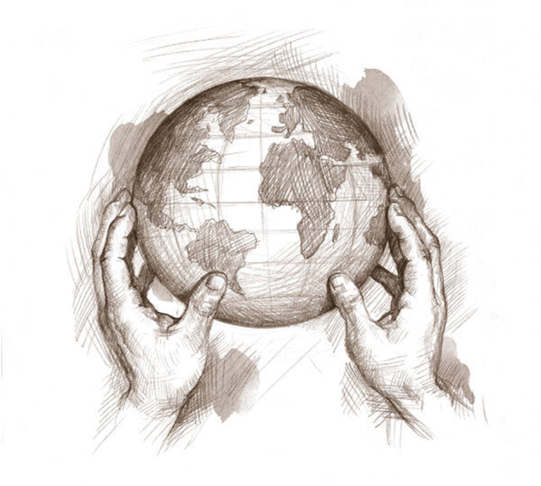 ![Планета в руках карандашом]()