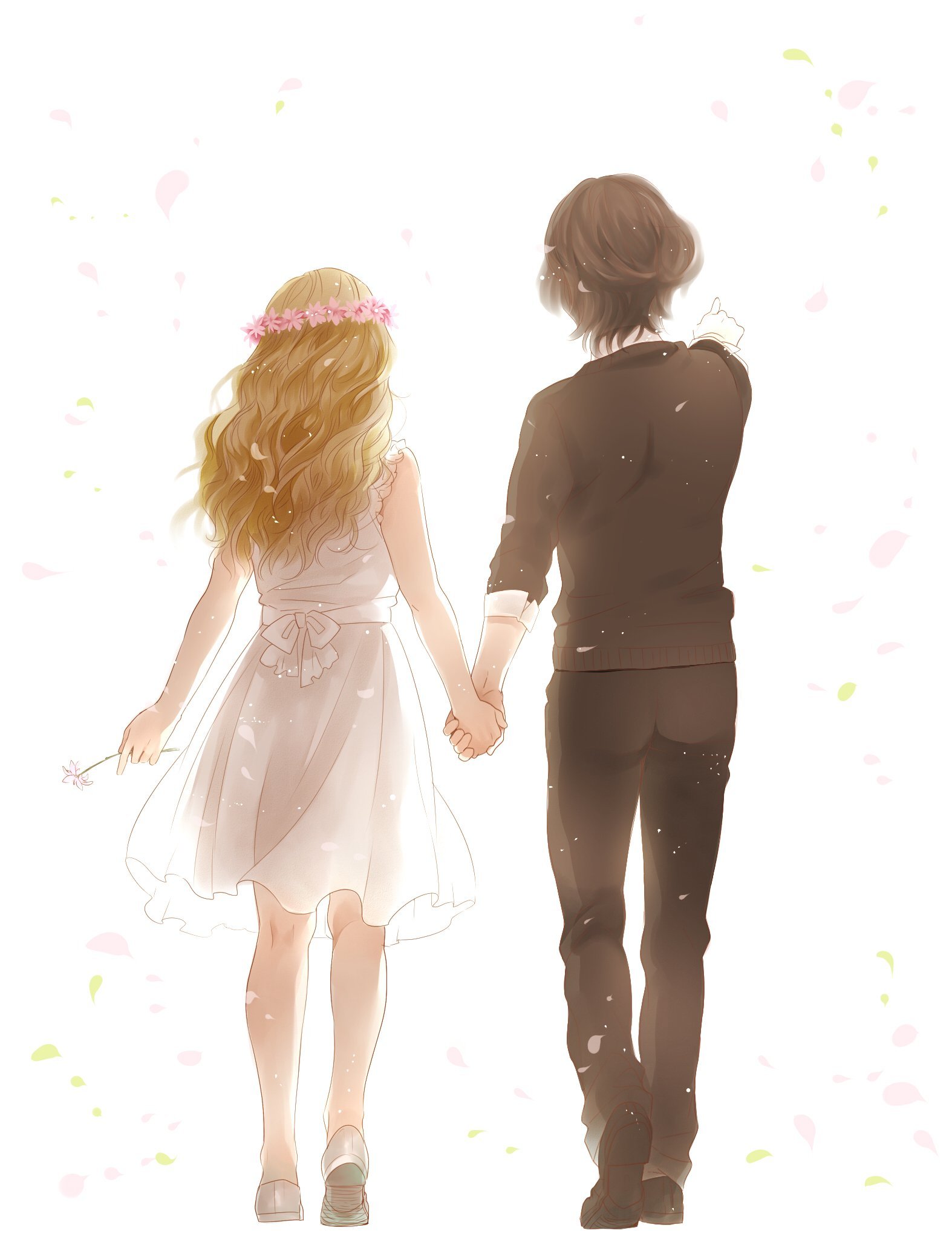 ![Аниме пара держатся за руки]()