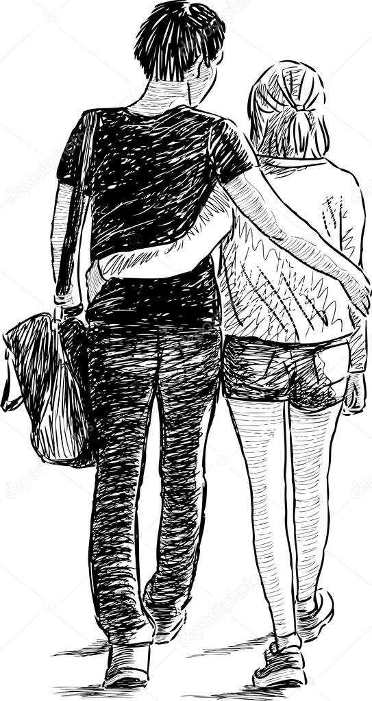 ![Наброски людей прогулка]()