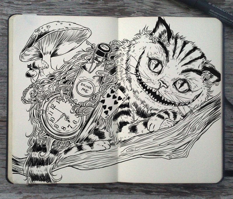 Рисунки в скетчбук Алиса в стране чудес