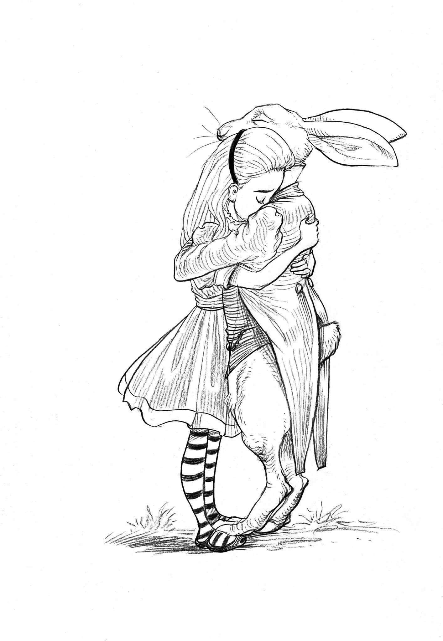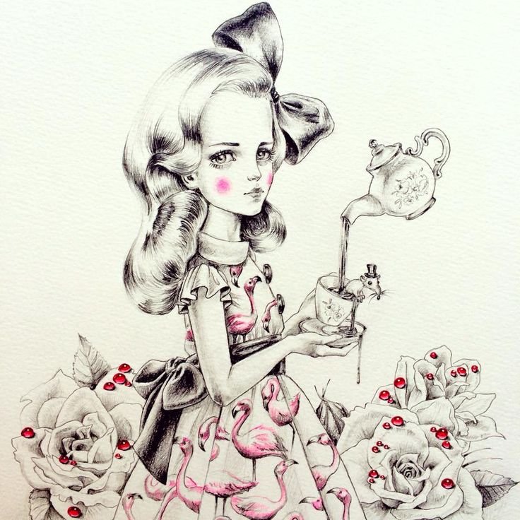 Алиса в стране чудес рисунок карандашом для срисовки