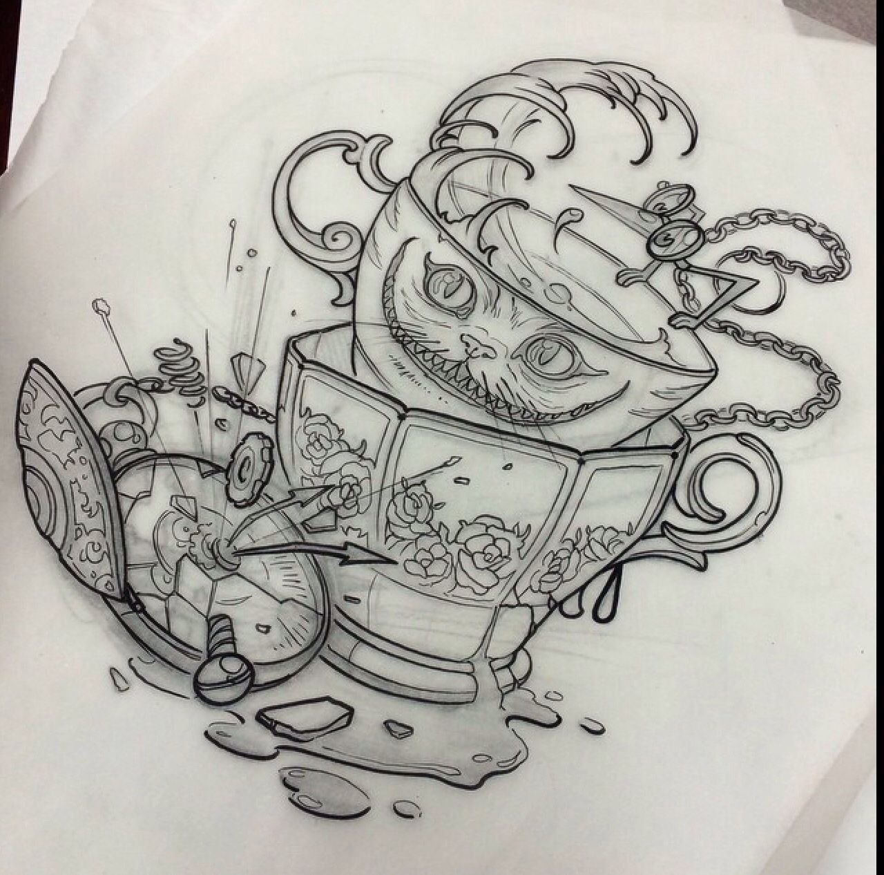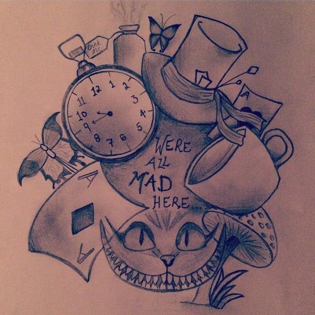 ![Alice in Wonderland тату эскиз]()