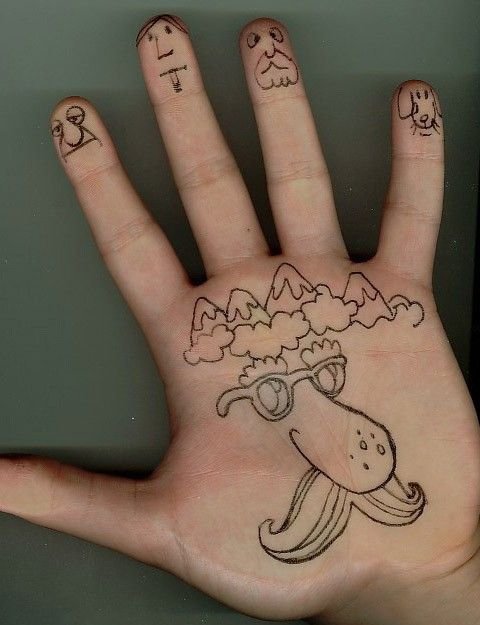![Рисуночки на руках ручкой]()