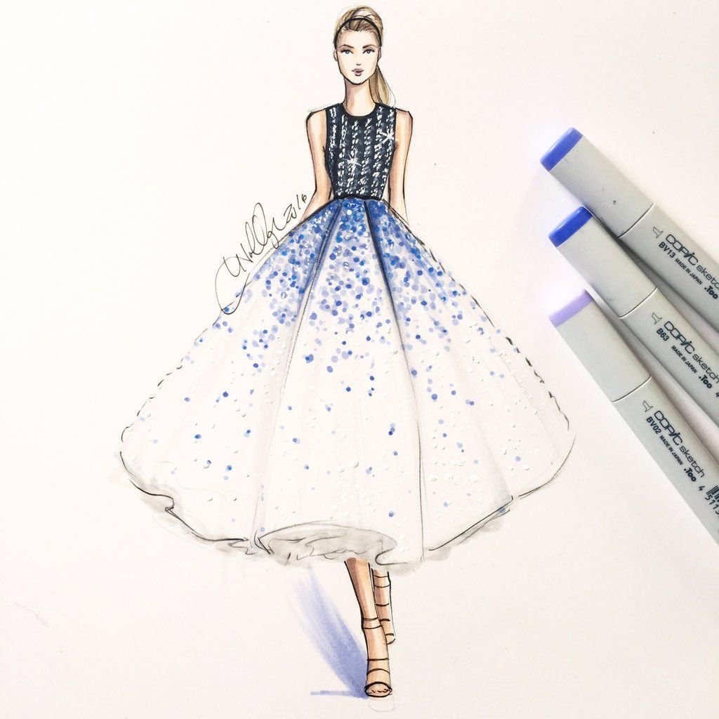 ![Скетчинг для начинающих платья]()