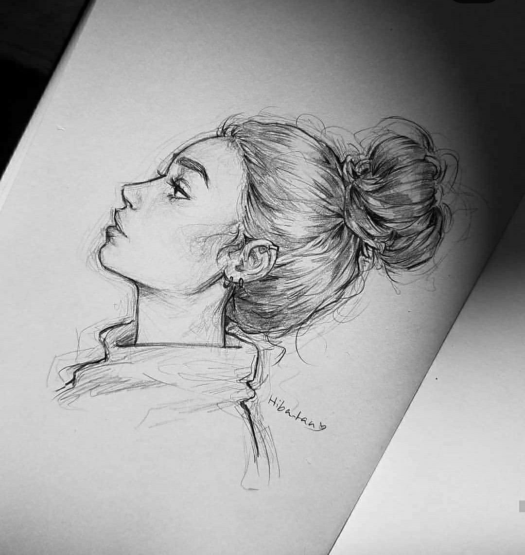 ![Рисунок девушки карандашом]()