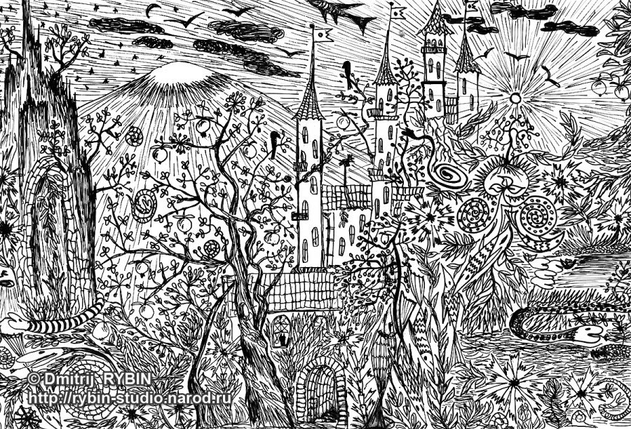 ![Пейзаж гелевой ручкой]()