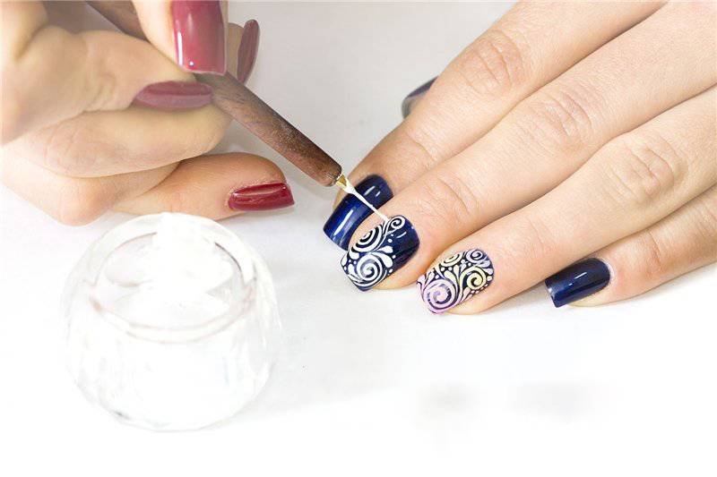 ![Рисунки иголкой на ногтях гелем для начинающих]()