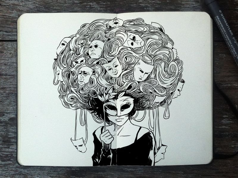 Скетчи черной ручкой