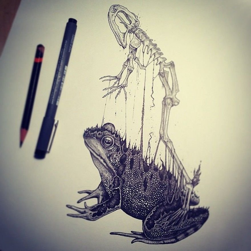 Скелет черной ручкой