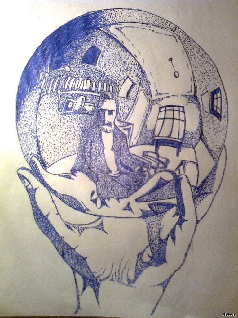 ![Стеклянный шар карандашом]()