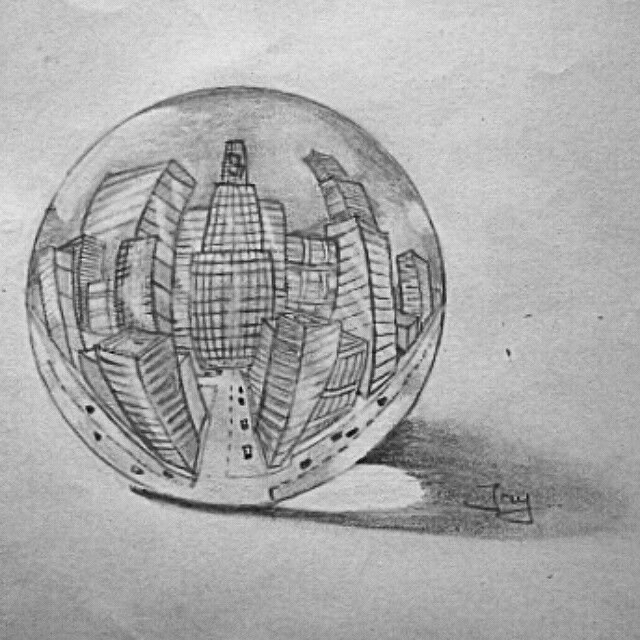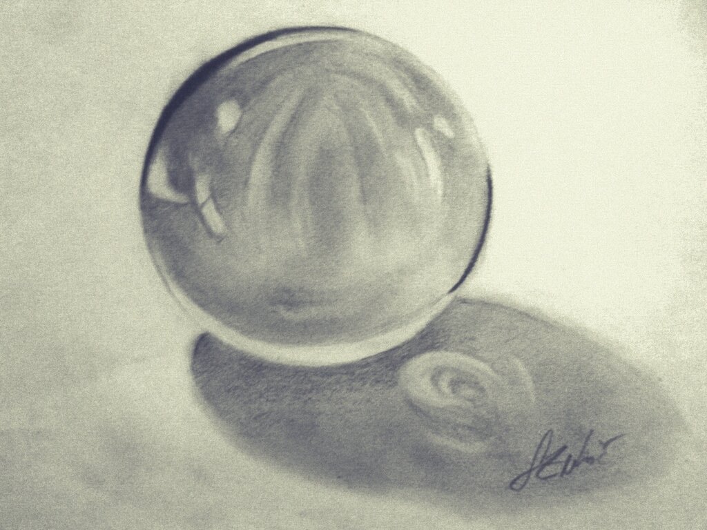 Стеклянный шар карандашом